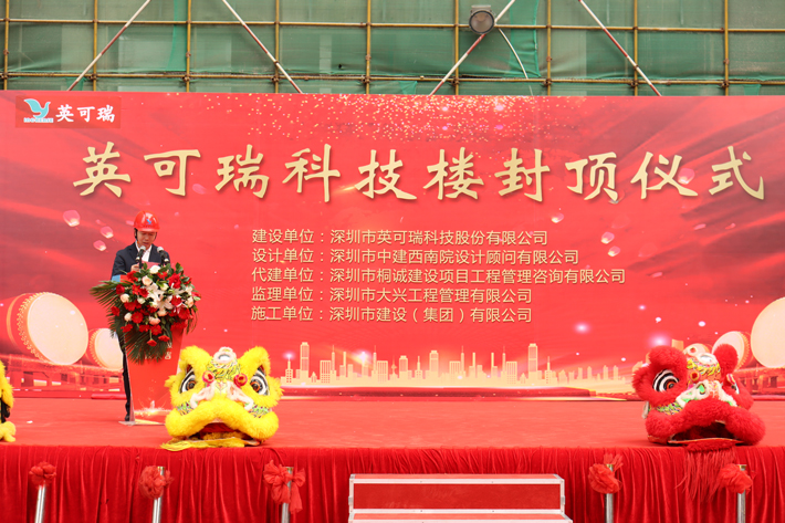 儀式上,英可瑞董事長尹總對參建各方在項目上和衷共濟、通力協(xié)作表示肯定,對項目的施工質(zhì)量、工期管理給予高度認可,對建設(shè)者的辛勤勞動及社會各界朋友的關(guān)心支持表示衷心感謝。