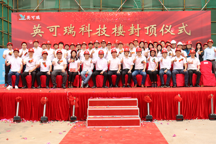 2019年11月26日上午英可瑞科技樓封頂儀式順利舉行。英可瑞董事長尹偉攜公司高層、員工代表參加了封頂儀式。